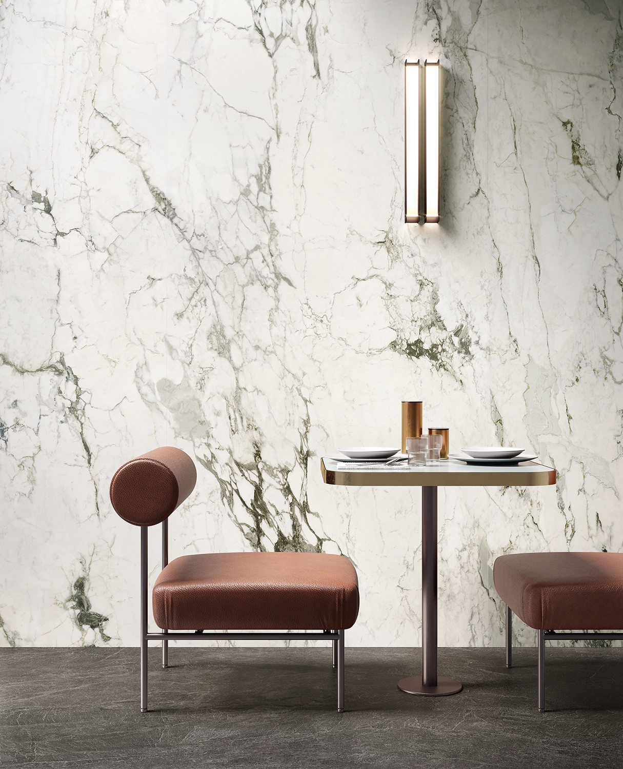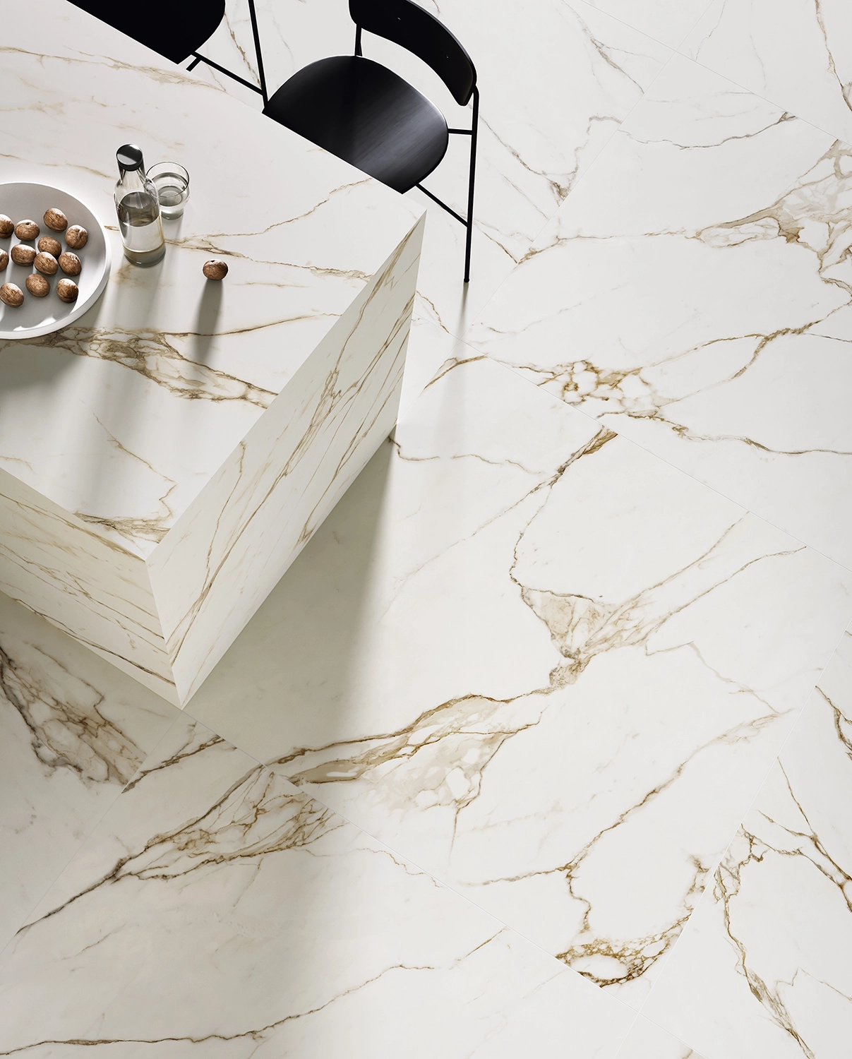 Seducente e senza tempo, la bellezza dei marmi più nobili rivive nelle superfici ceramiche ultra-realistiche e tecnicamente ineccepibili della collezione Atelier.