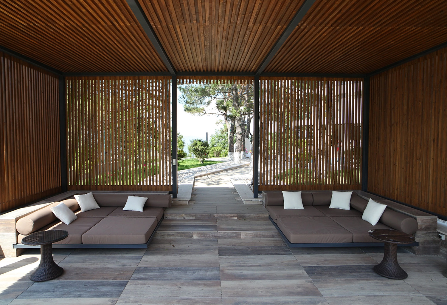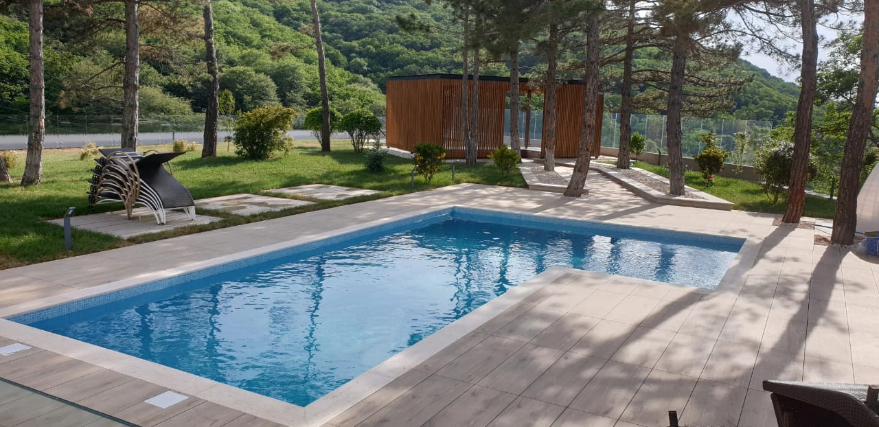 Cette villa en Géorgie a été réalisée avec une sélection de sols en céramique pensés pour mettre en valeur les espaces intérieurs et extérieurs. Chaque surface a été choisie pour faire ressortir le caractère de la maison, en associant des finitions et des couleurs qui s’inscrivent dans le style d’architecture. À l’intérieur, les textures et les teintes des sols apportent de la personnalité aux pièces, tandis qu’à l’extérieur, les matériaux dialoguent avec le paysage, accompagnant la structure avec naturel.
