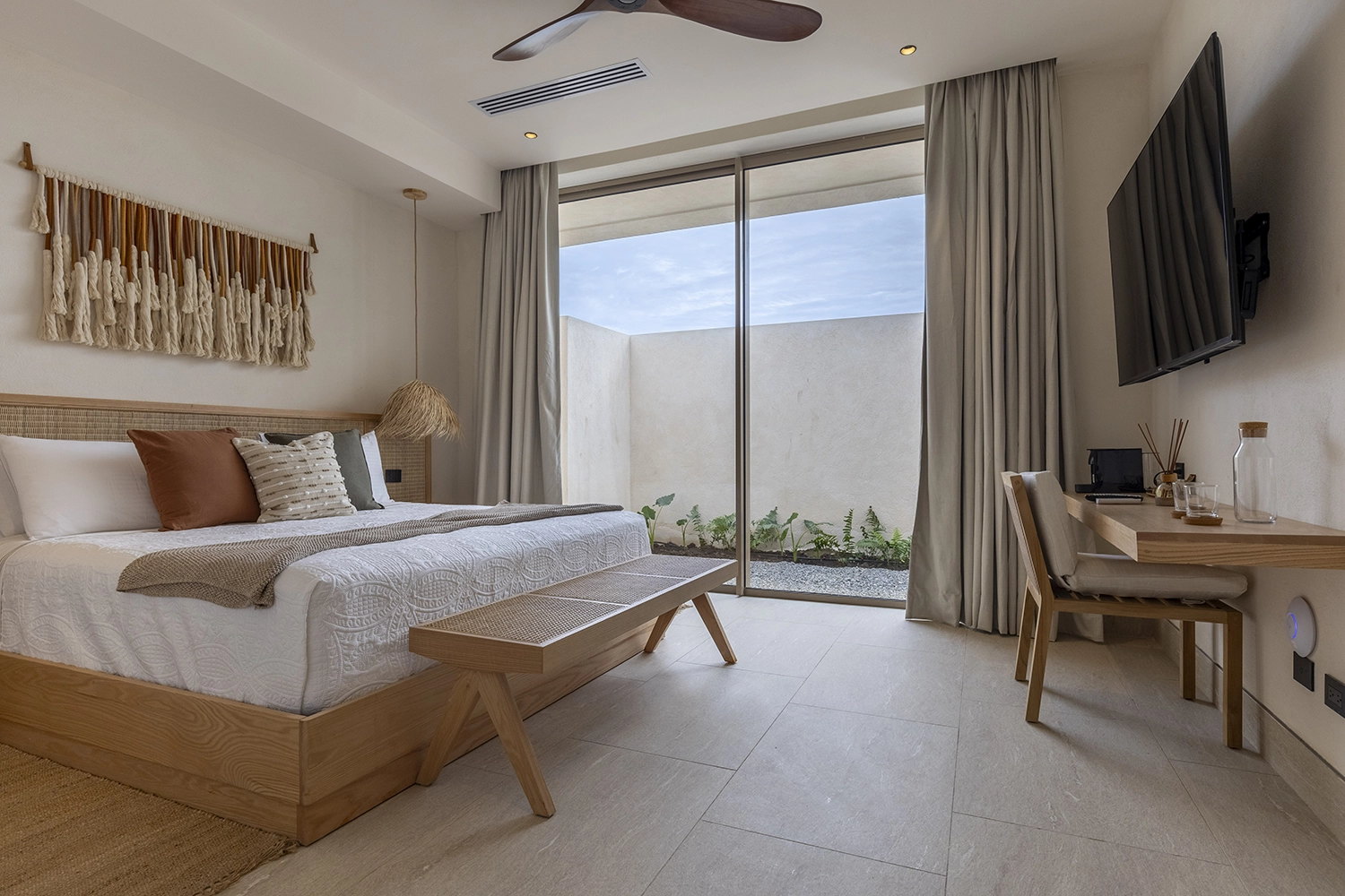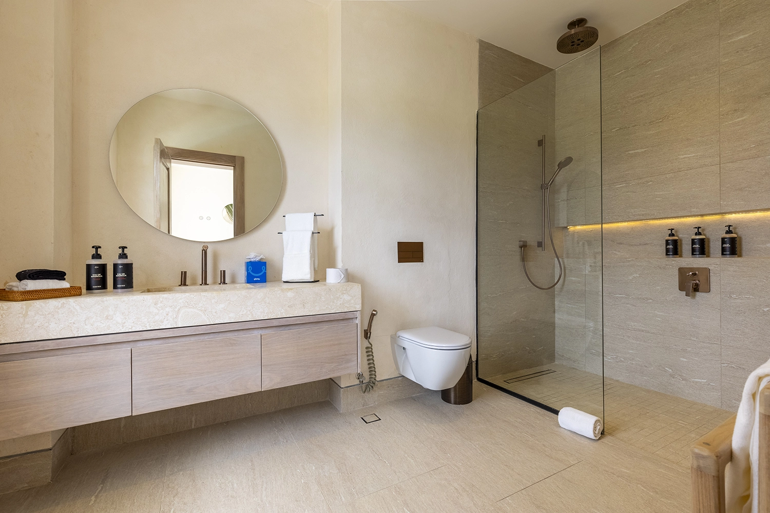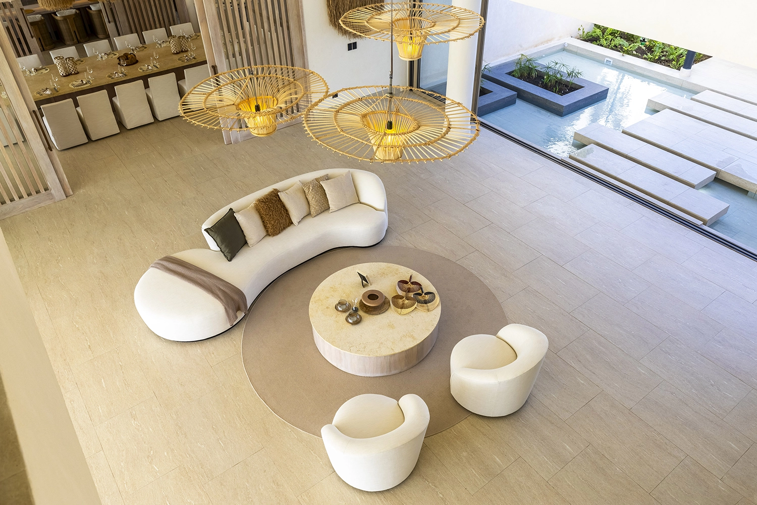 Créer une harmonie avec la nature, en choisissant des matériaux chauds, des tos crème pour les sols, les murs et les tissus.